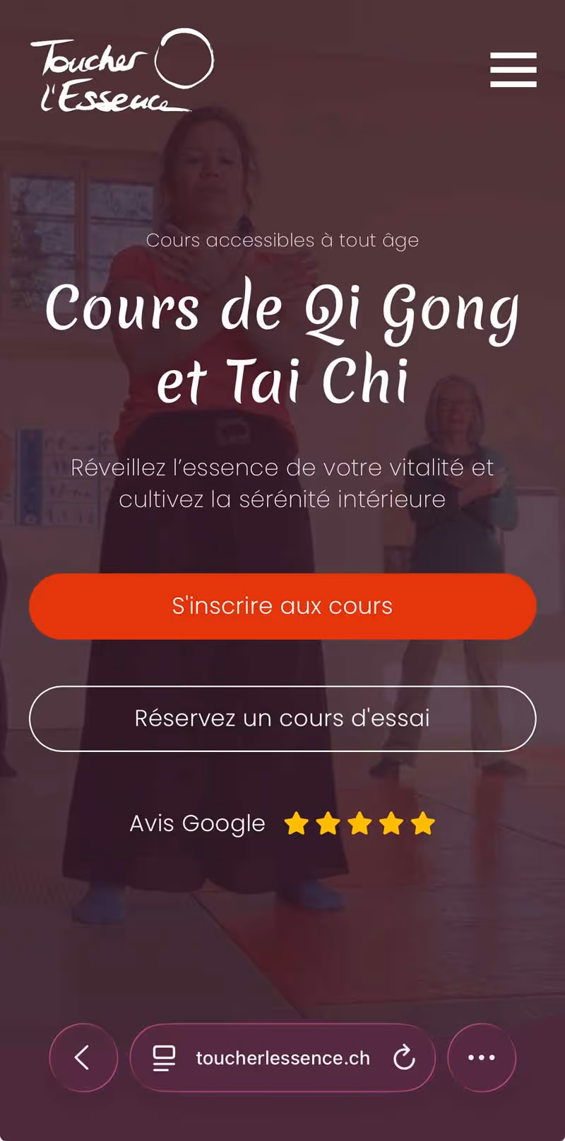 Natacha proposait déjà des cours de Tai Chi et de Qi Gong mais ne disposait pas d’une communication structurée ni d’un site permettant de présenter clairement les informations sur les cours, les tarifs et les modalités d’inscription aux élèves.