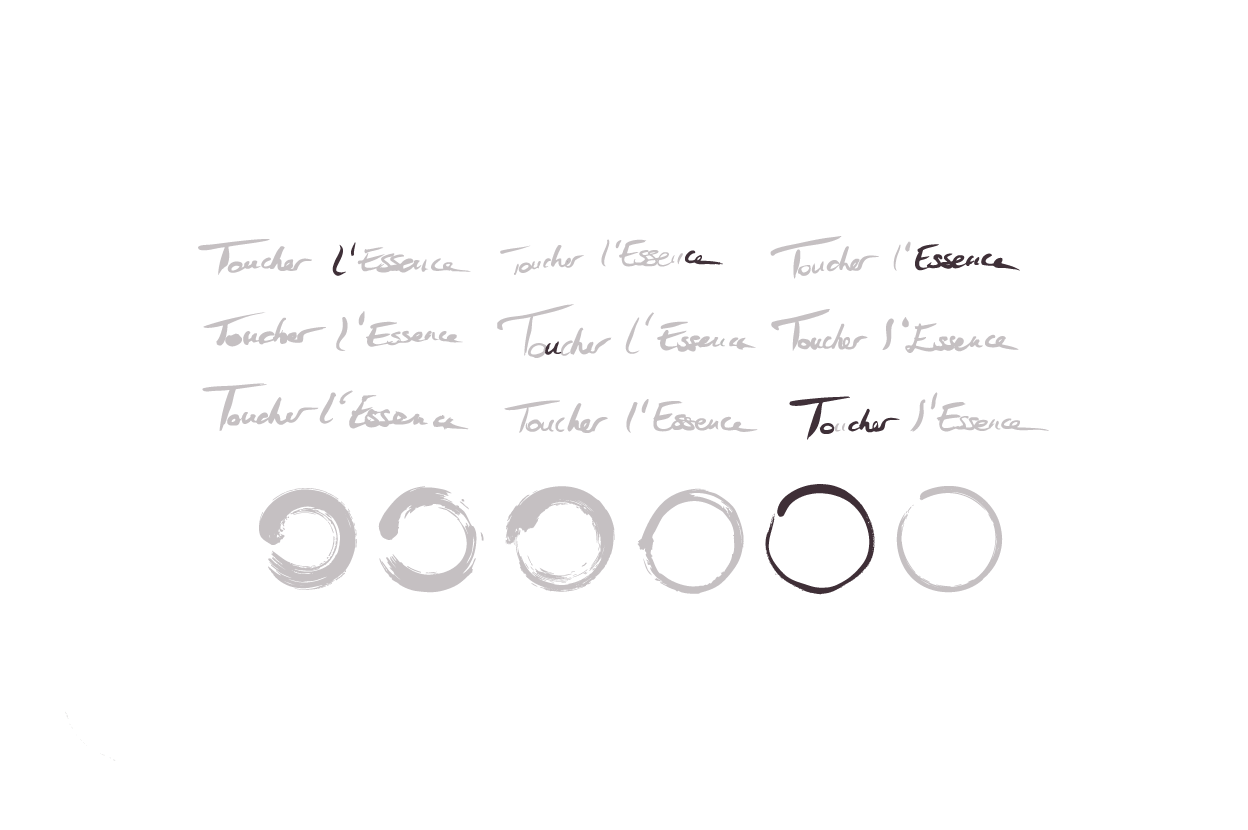 Le lettrage du logo a été réalisé au pinceau par Natacha, également artiste peintre. Le cercle s’inspire de l’enso, un symbole zen représentant le geste et l’essence.