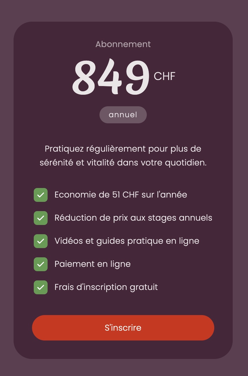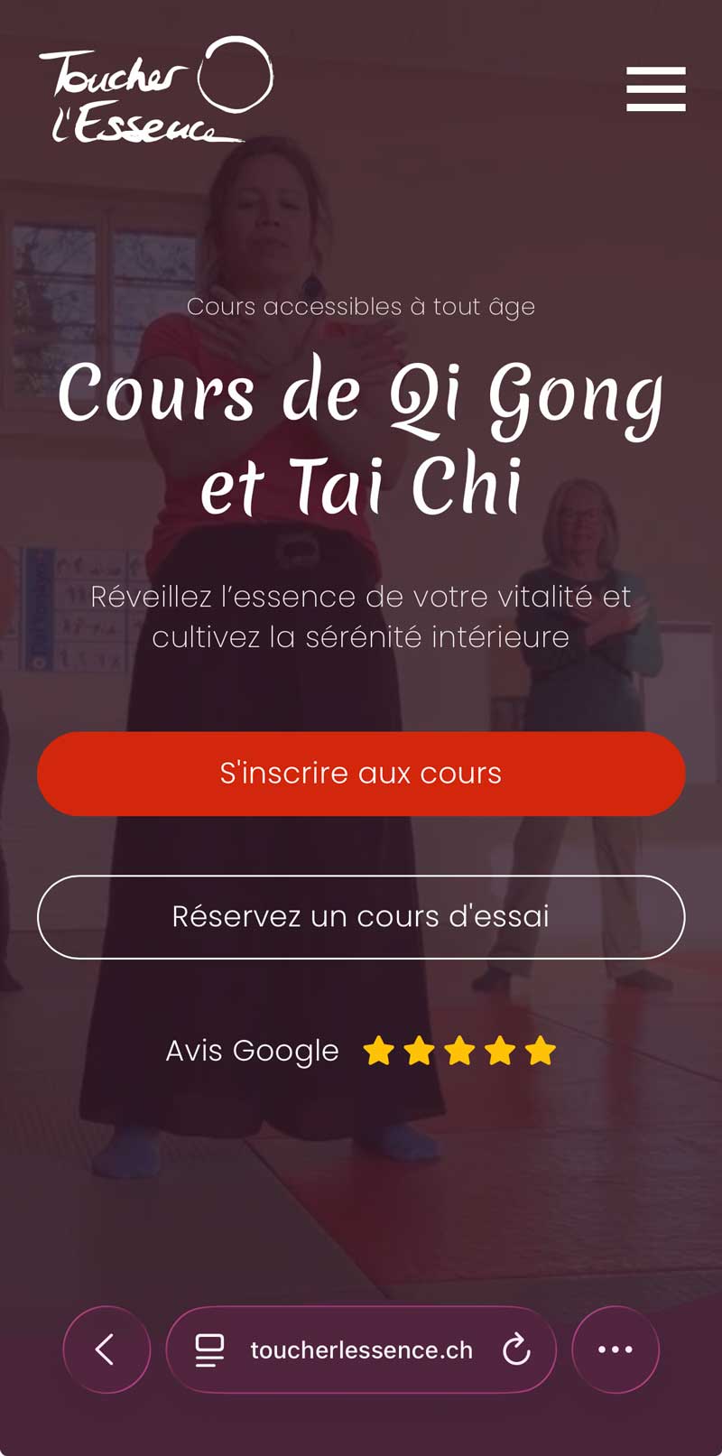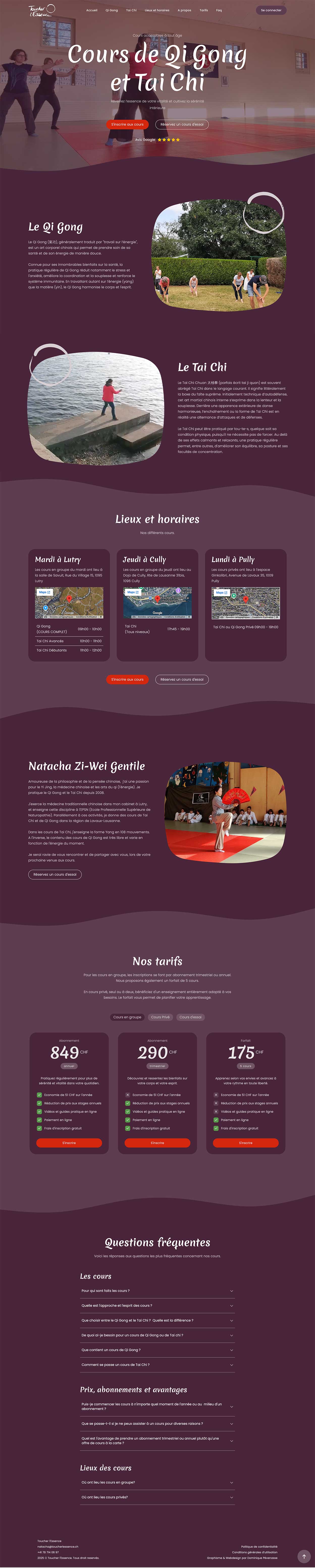 Natacha avait besoin de structurer la communication autour de ses cours de tai chi et de qi gong et de disposer d’un site permettant de présenter clairement les informations, gérer les inscriptions et partager des ressources avec ses élèves.